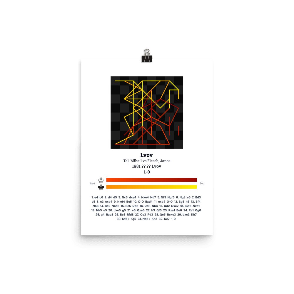 Museum-quality poster on thick, durable matte paper. A sharp, clean look for any chess visualisation.