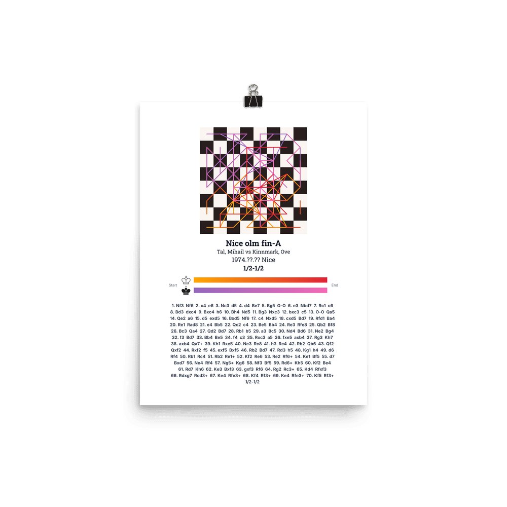 Museum-quality poster on thick, durable matte paper. A sharp, clean look for any chess visualisation.
