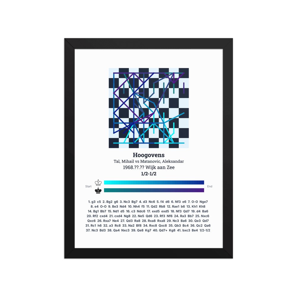 Museum-quality poster on thick, durable matte paper. A sharp, clean look for any chess visualisation.
