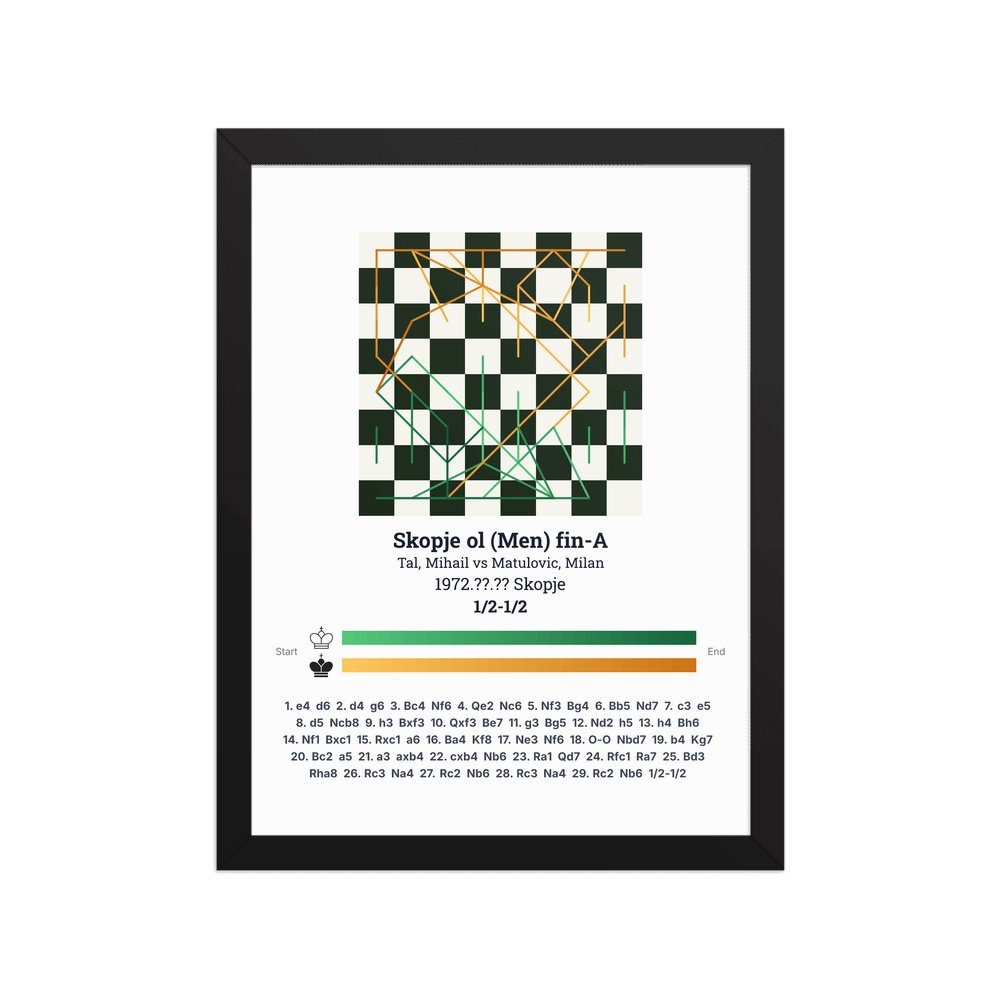 Museum-quality poster on thick, durable matte paper. A sharp, clean look for any chess visualisation.