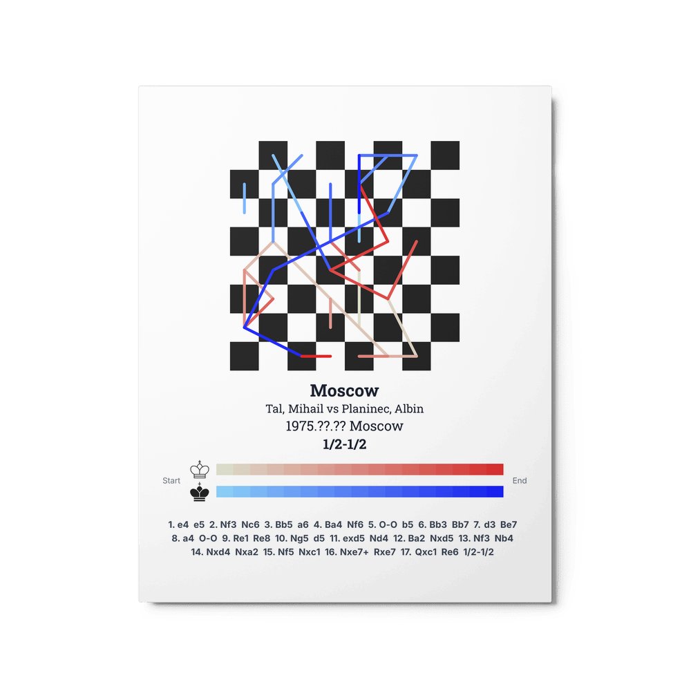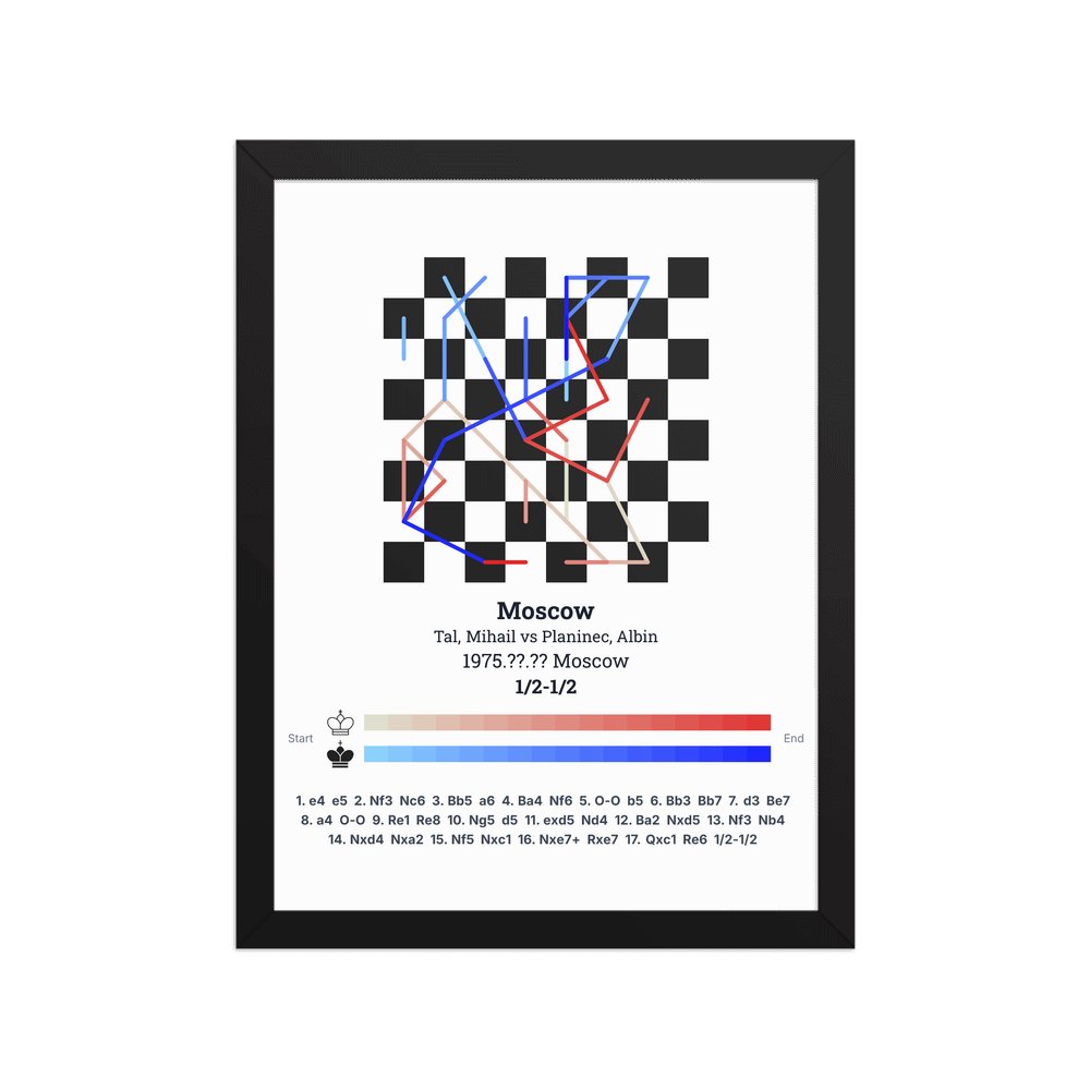 Museum-quality poster on thick, durable matte paper. A sharp, clean look for any chess visualisation.