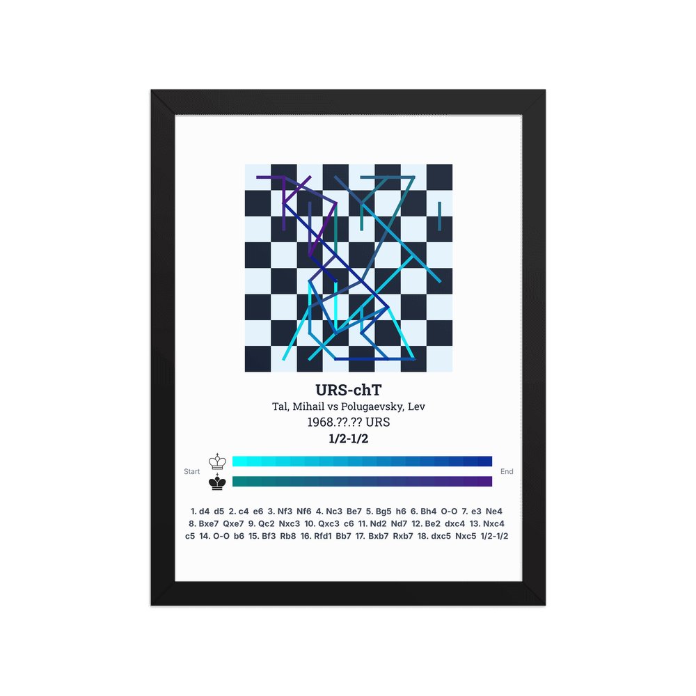 Museum-quality poster on thick, durable matte paper. A sharp, clean look for any chess visualisation.