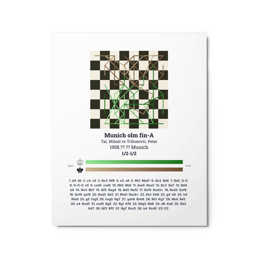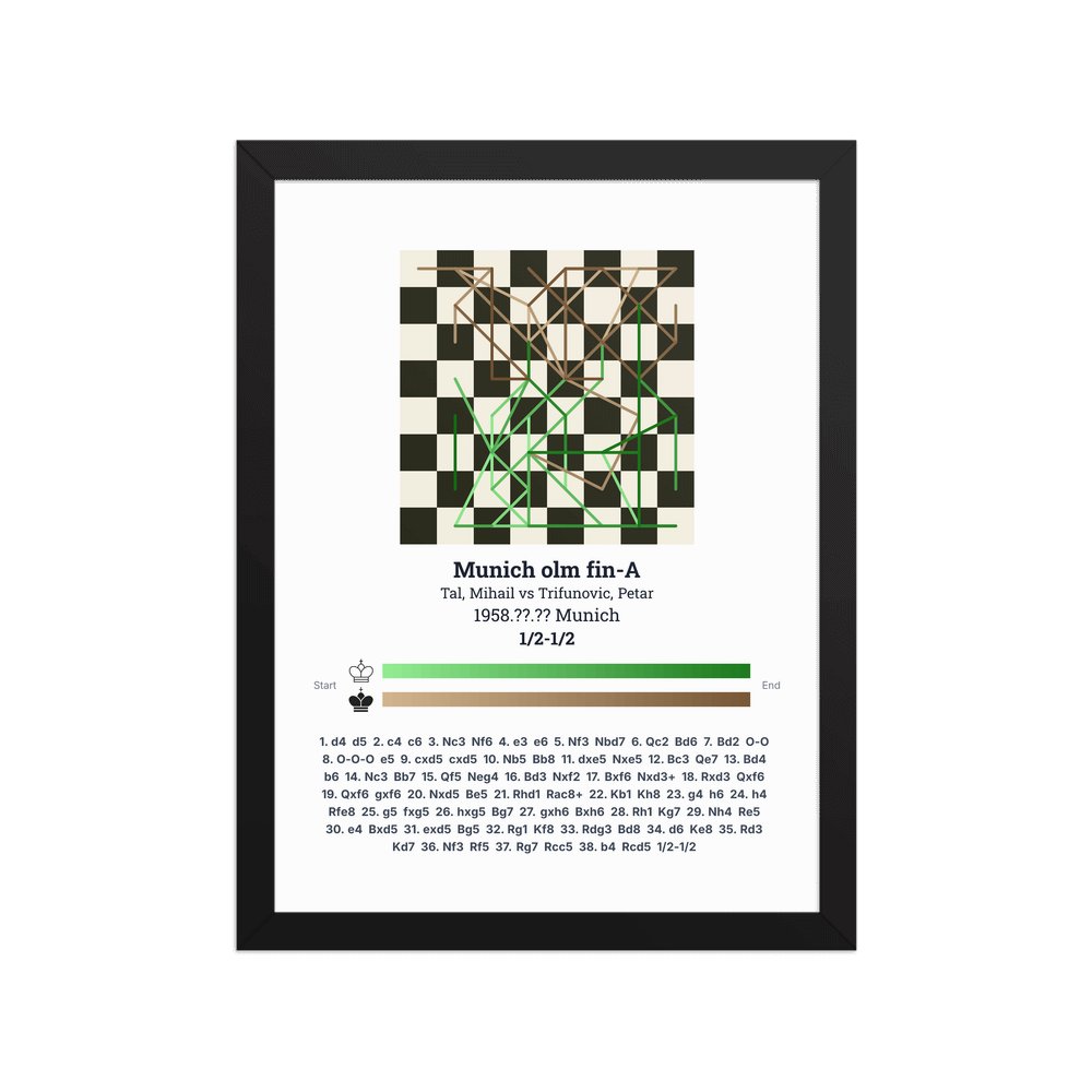 Museum-quality poster on thick, durable matte paper. A sharp, clean look for any chess visualisation.