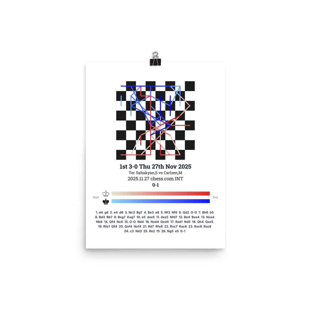 Museum-quality poster on thick, durable matte paper. A sharp, clean look for any chess visualisation.