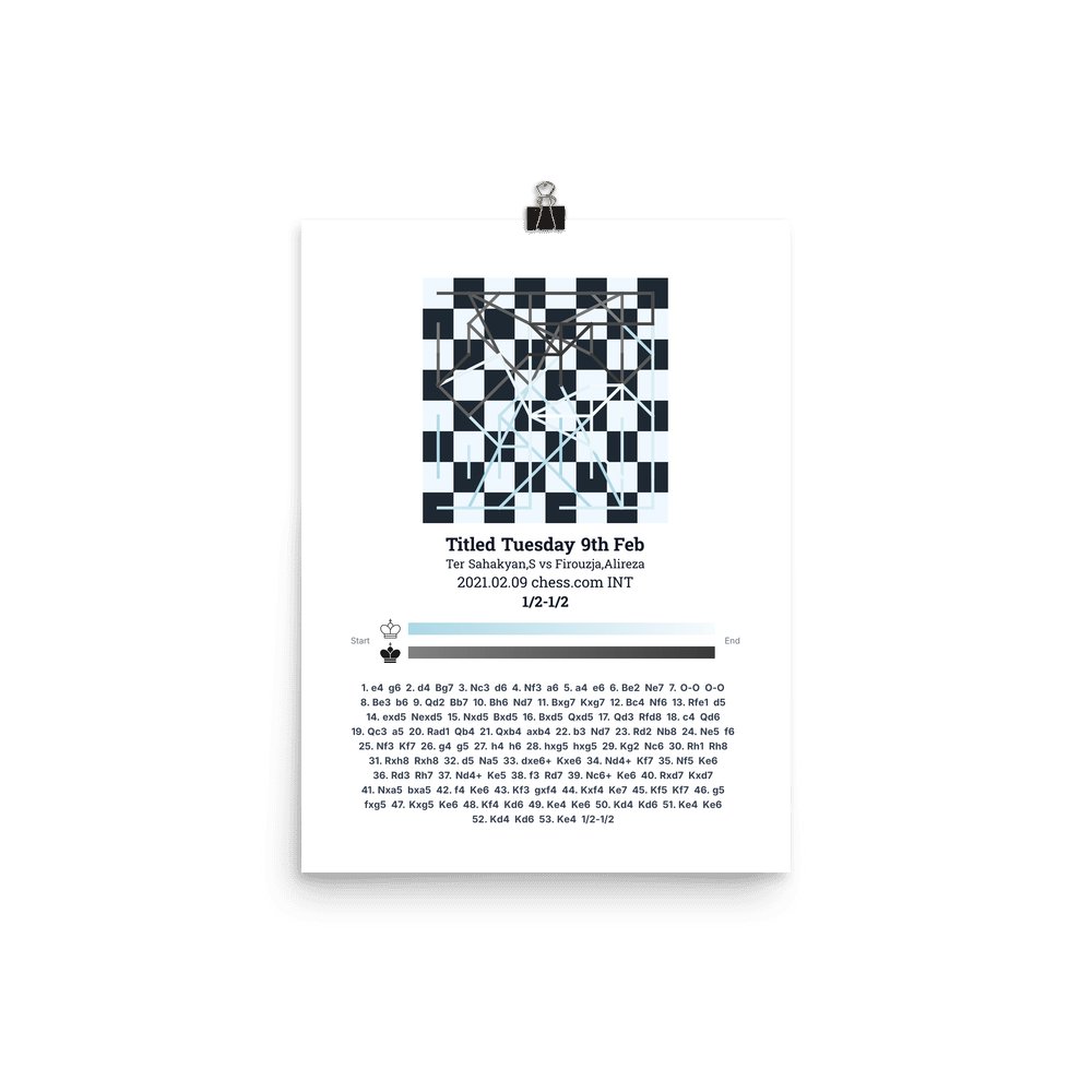 Museum-quality poster on thick, durable matte paper. A sharp, clean look for any chess visualisation.