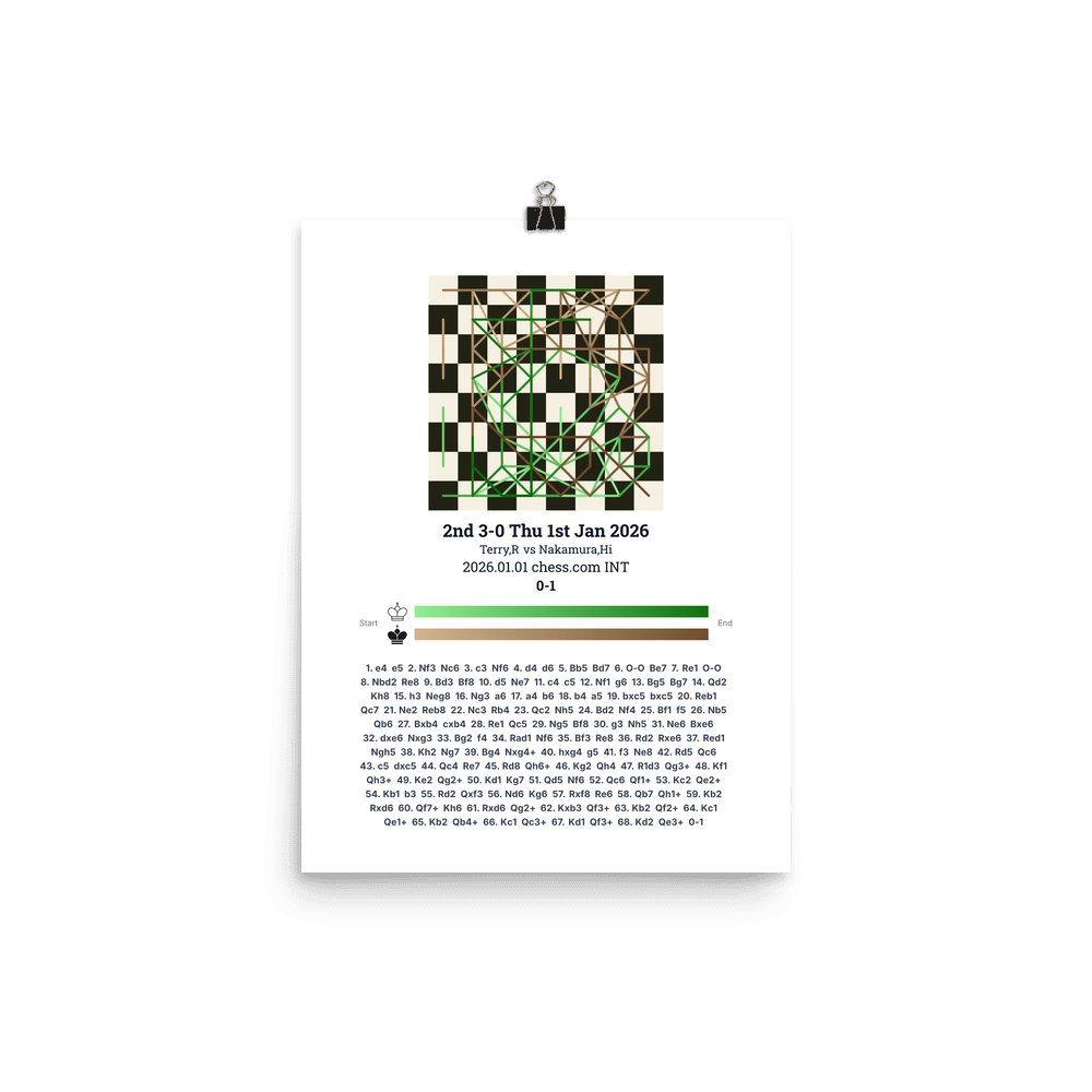 Museum-quality poster on thick, durable matte paper. A sharp, clean look for any chess visualisation.