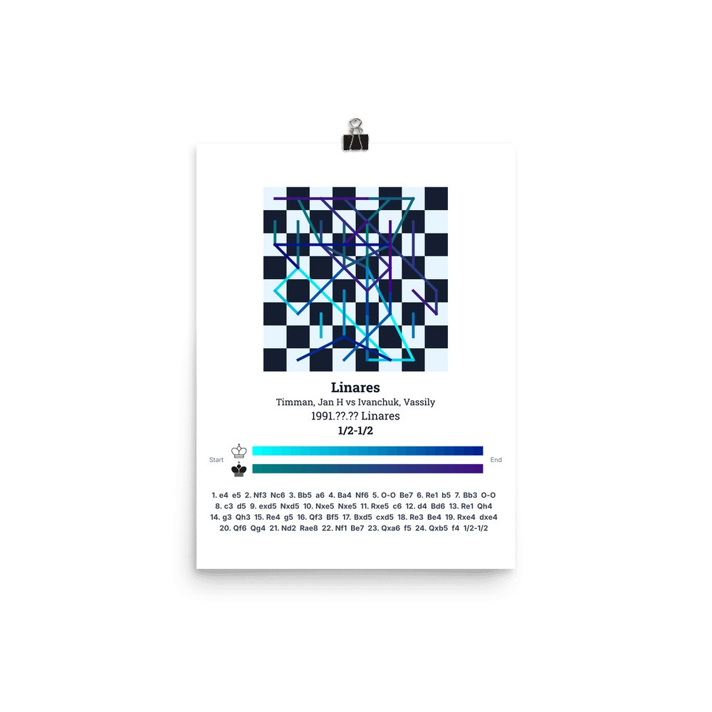 Museum-quality poster on thick, durable matte paper. A sharp, clean look for any chess visualisation.
