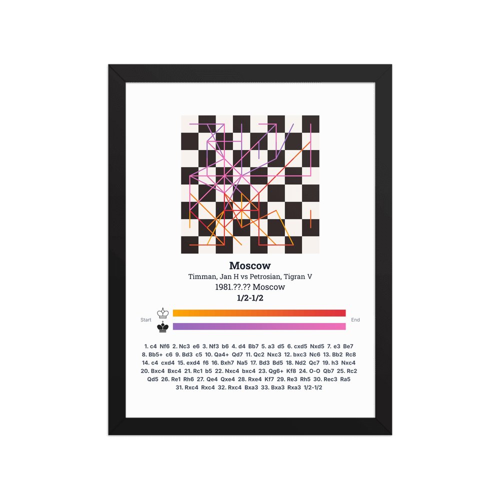 Museum-quality poster on thick, durable matte paper. A sharp, clean look for any chess visualisation.