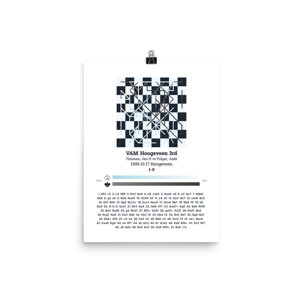 Museum-quality poster on thick, durable matte paper. A sharp, clean look for any chess visualisation.