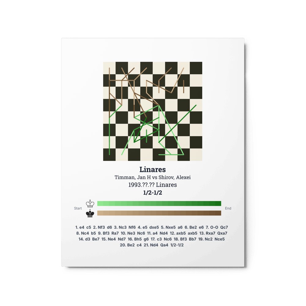 Museum-quality poster on thick, durable matte paper. A sharp, clean look for any chess visualisation.