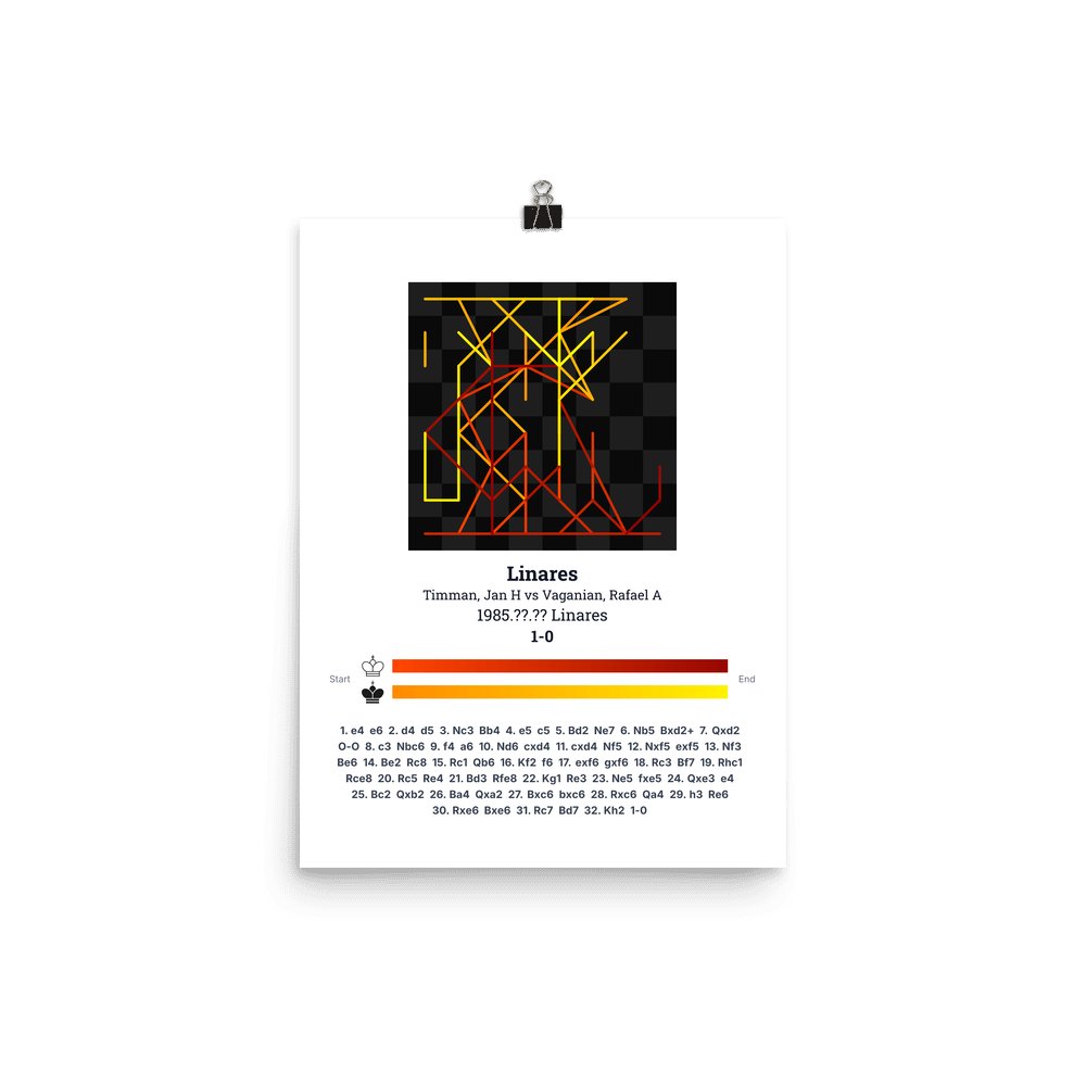 Museum-quality poster on thick, durable matte paper. A sharp, clean look for any chess visualisation.