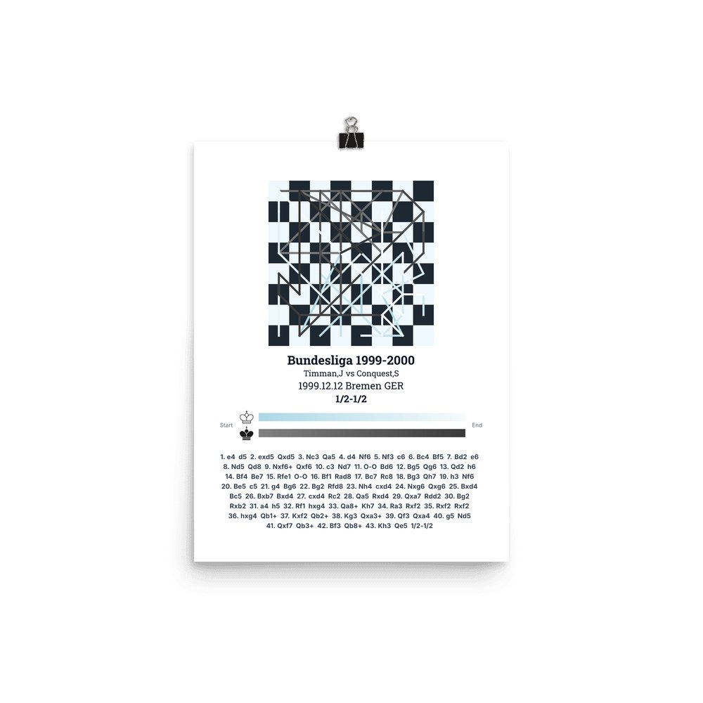 Museum-quality poster on thick, durable matte paper. A sharp, clean look for any chess visualisation.