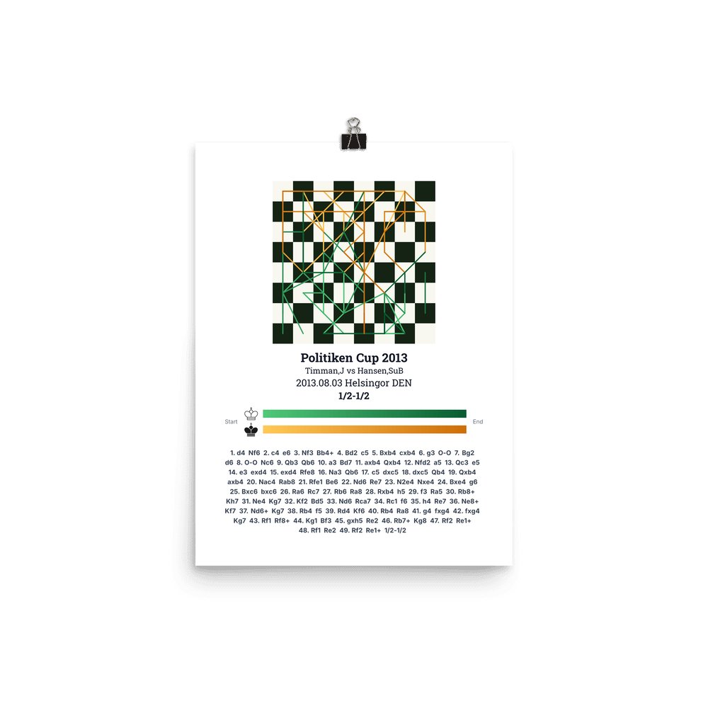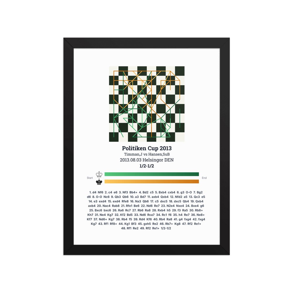 Museum-quality poster on thick, durable matte paper. A sharp, clean look for any chess visualisation.