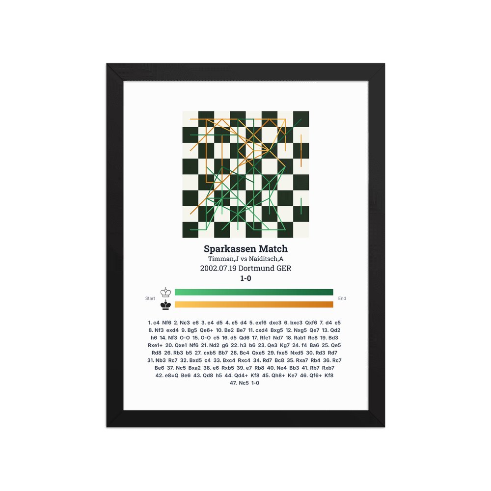 Museum-quality poster on thick, durable matte paper. A sharp, clean look for any chess visualisation.