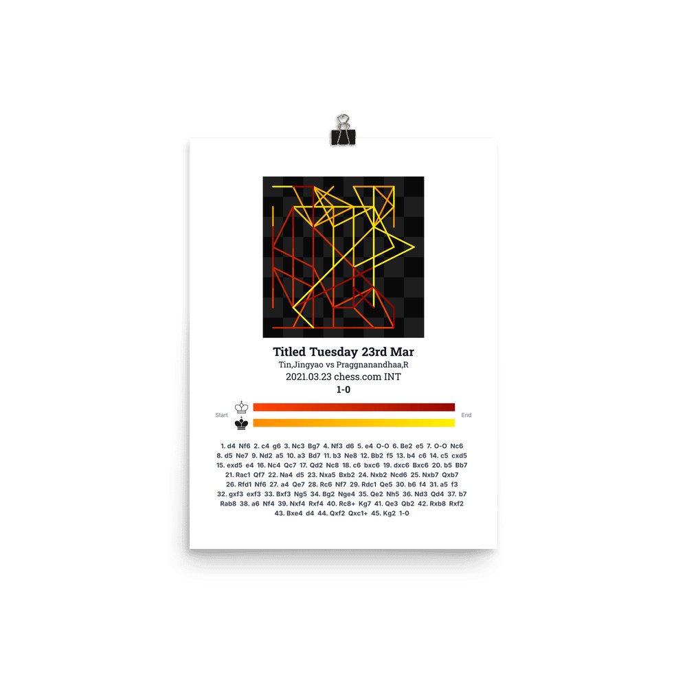 Museum-quality poster on thick, durable matte paper. A sharp, clean look for any chess visualisation.