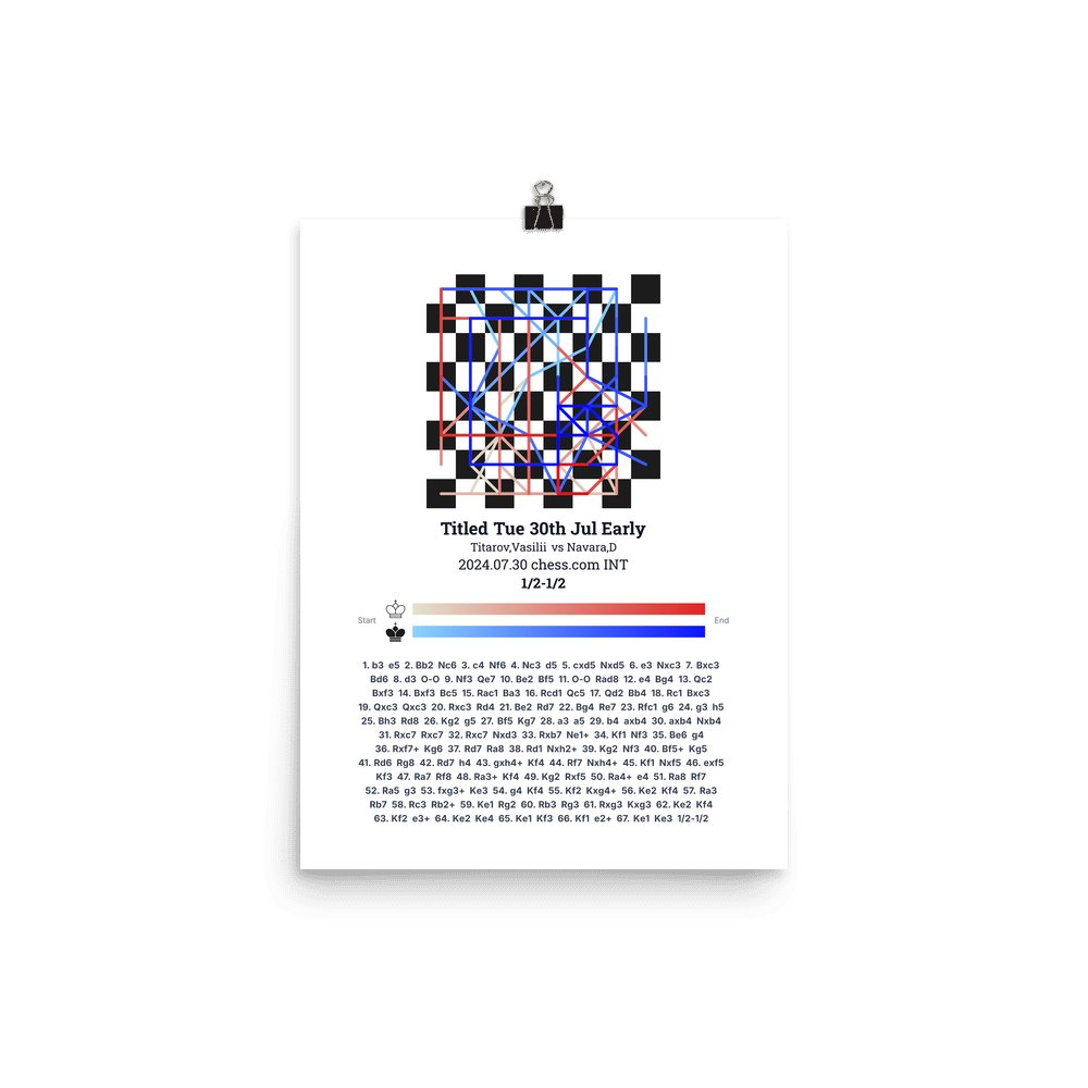 Museum-quality poster on thick, durable matte paper. A sharp, clean look for any chess visualisation.