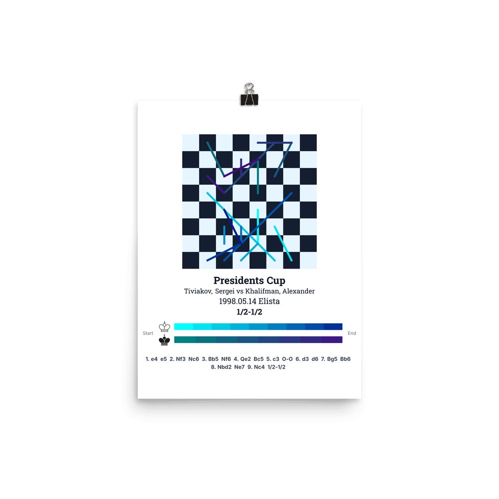 Museum-quality poster on thick, durable matte paper. A sharp, clean look for any chess visualisation.