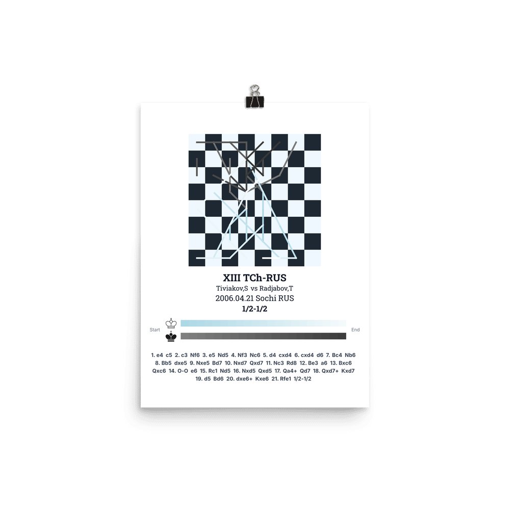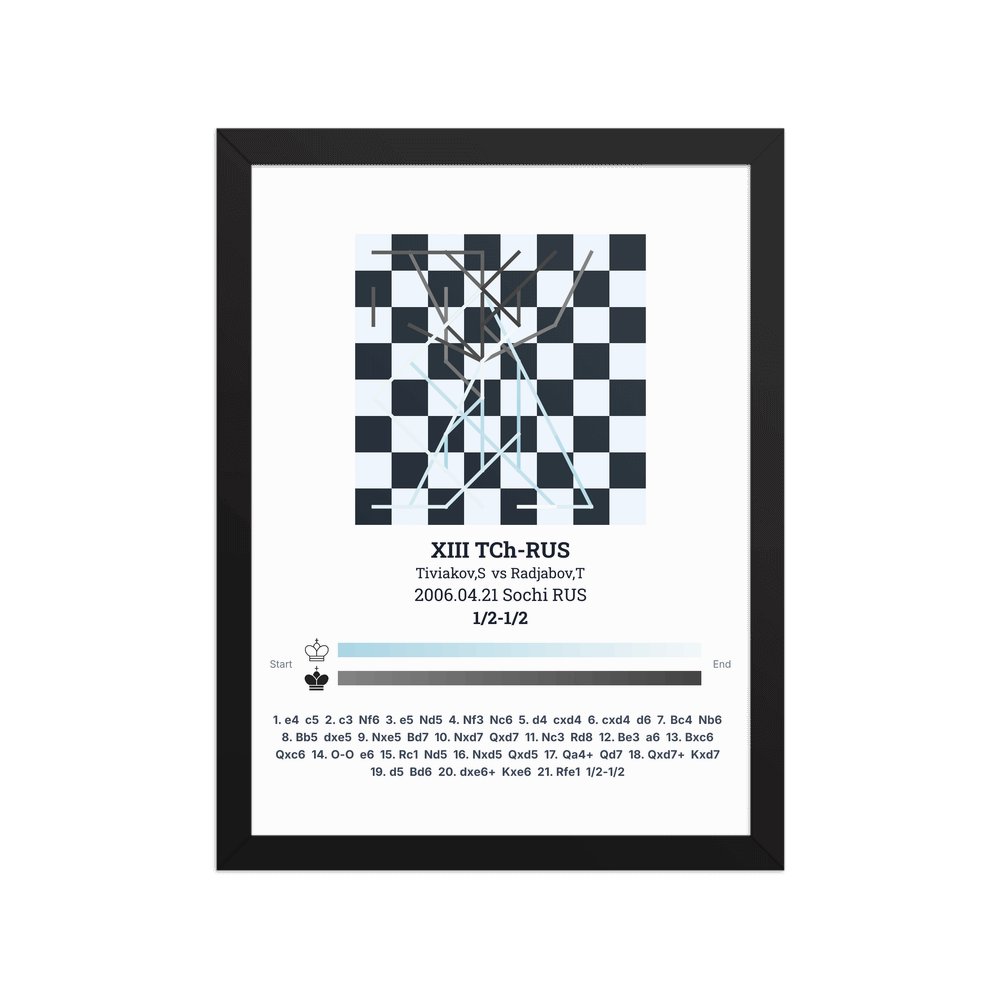 Museum-quality poster on thick, durable matte paper. A sharp, clean look for any chess visualisation.