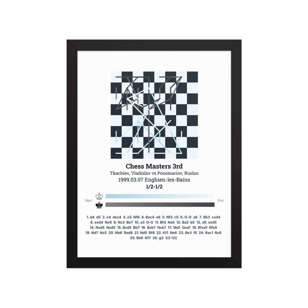 Museum-quality poster on thick, durable matte paper. A sharp, clean look for any chess visualisation.