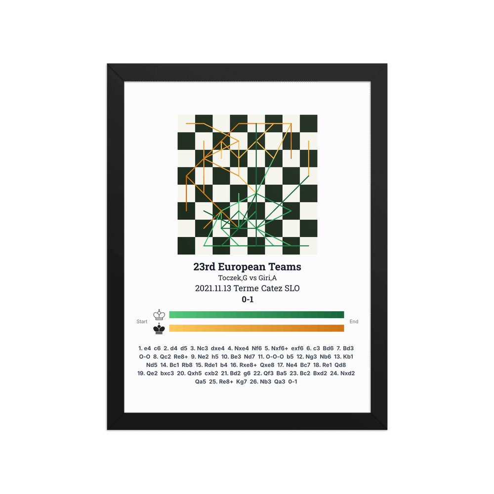 Museum-quality poster on thick, durable matte paper. A sharp, clean look for any chess visualisation.