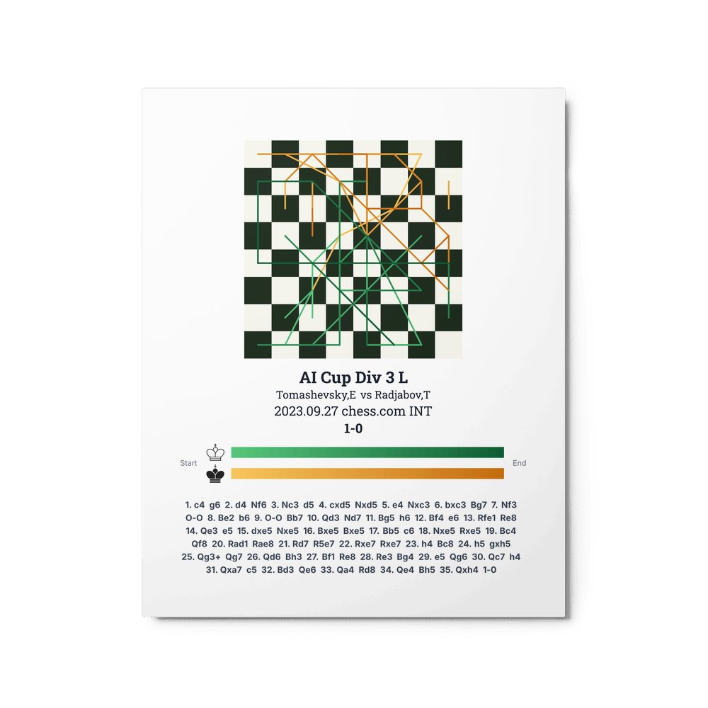 Museum-quality poster on thick, durable matte paper. A sharp, clean look for any chess visualisation.