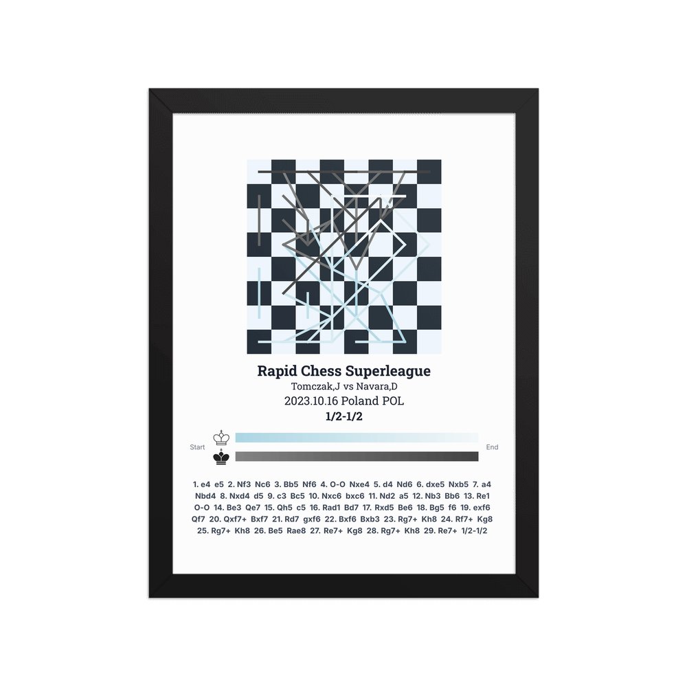Museum-quality poster on thick, durable matte paper. A sharp, clean look for any chess visualisation.