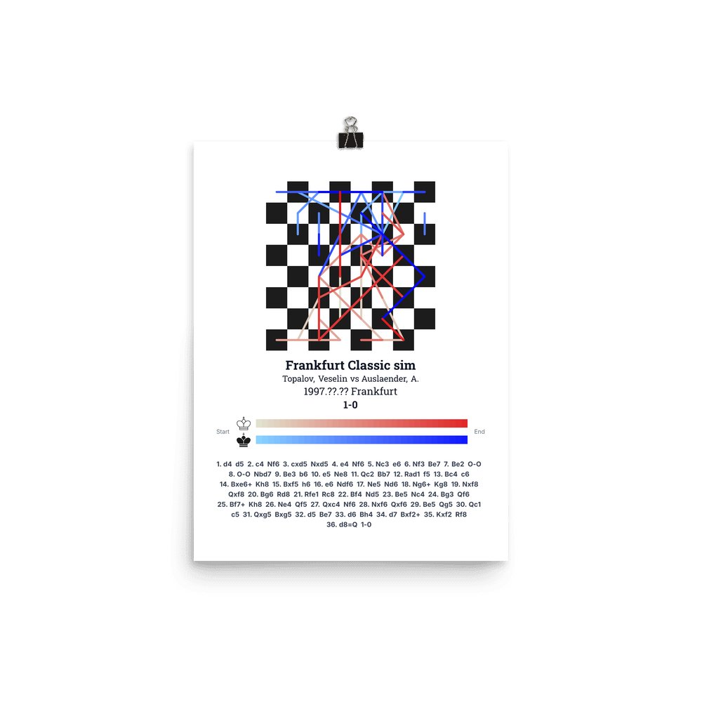 Museum-quality poster on thick, durable matte paper. A sharp, clean look for any chess visualisation.