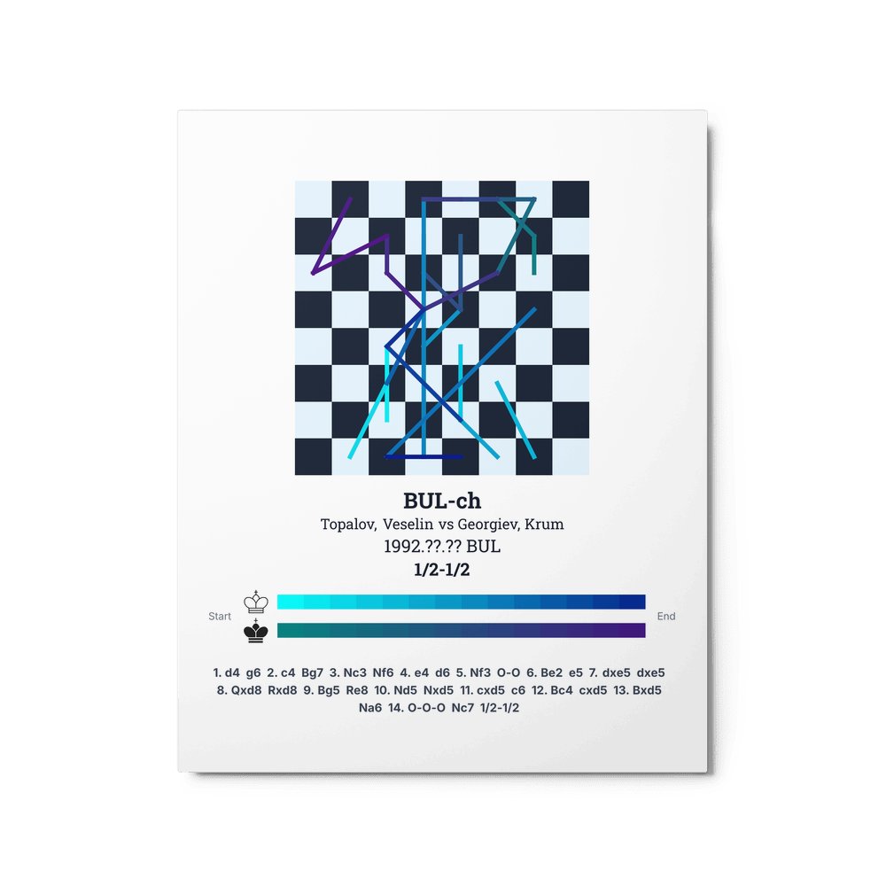 Museum-quality poster on thick, durable matte paper. A sharp, clean look for any chess visualisation.