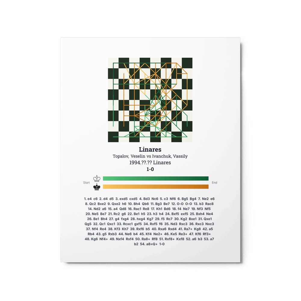 Museum-quality poster on thick, durable matte paper. A sharp, clean look for any chess visualisation.