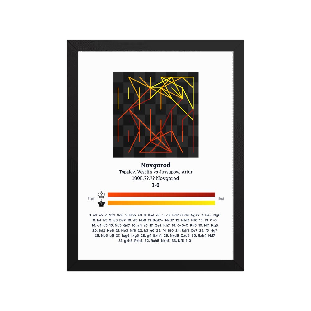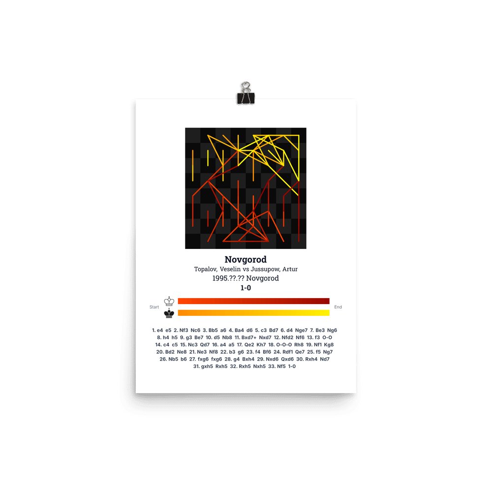 Museum-quality poster on thick, durable matte paper. A sharp, clean look for any chess visualisation.