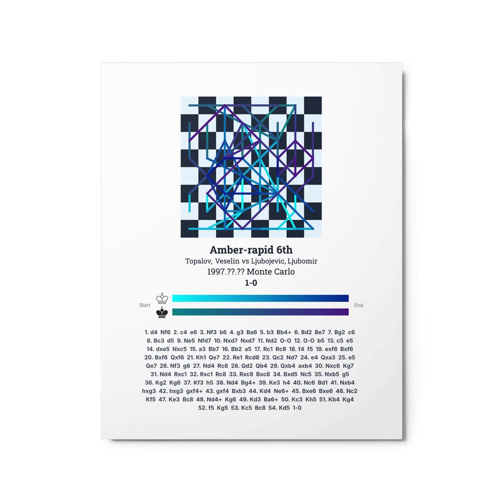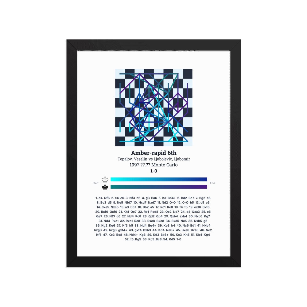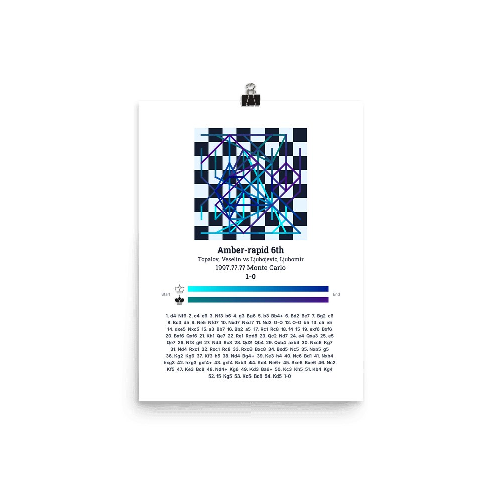 Museum-quality poster on thick, durable matte paper. A sharp, clean look for any chess visualisation.