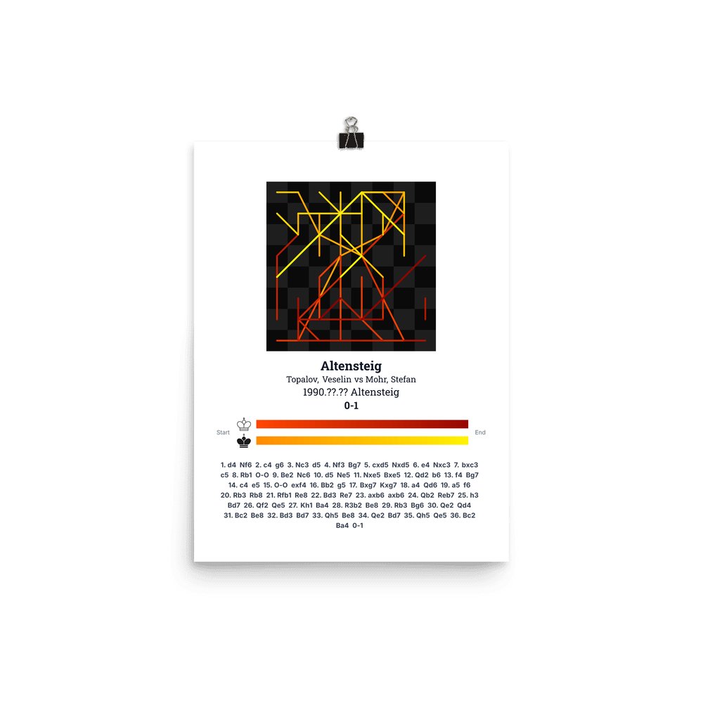 Museum-quality poster on thick, durable matte paper. A sharp, clean look for any chess visualisation.