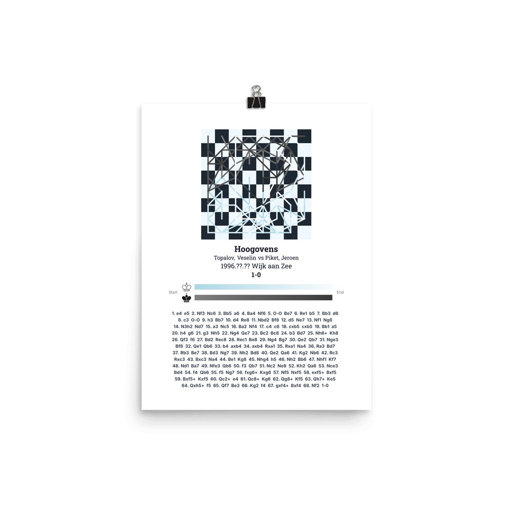 Museum-quality poster on thick, durable matte paper. A sharp, clean look for any chess visualisation.