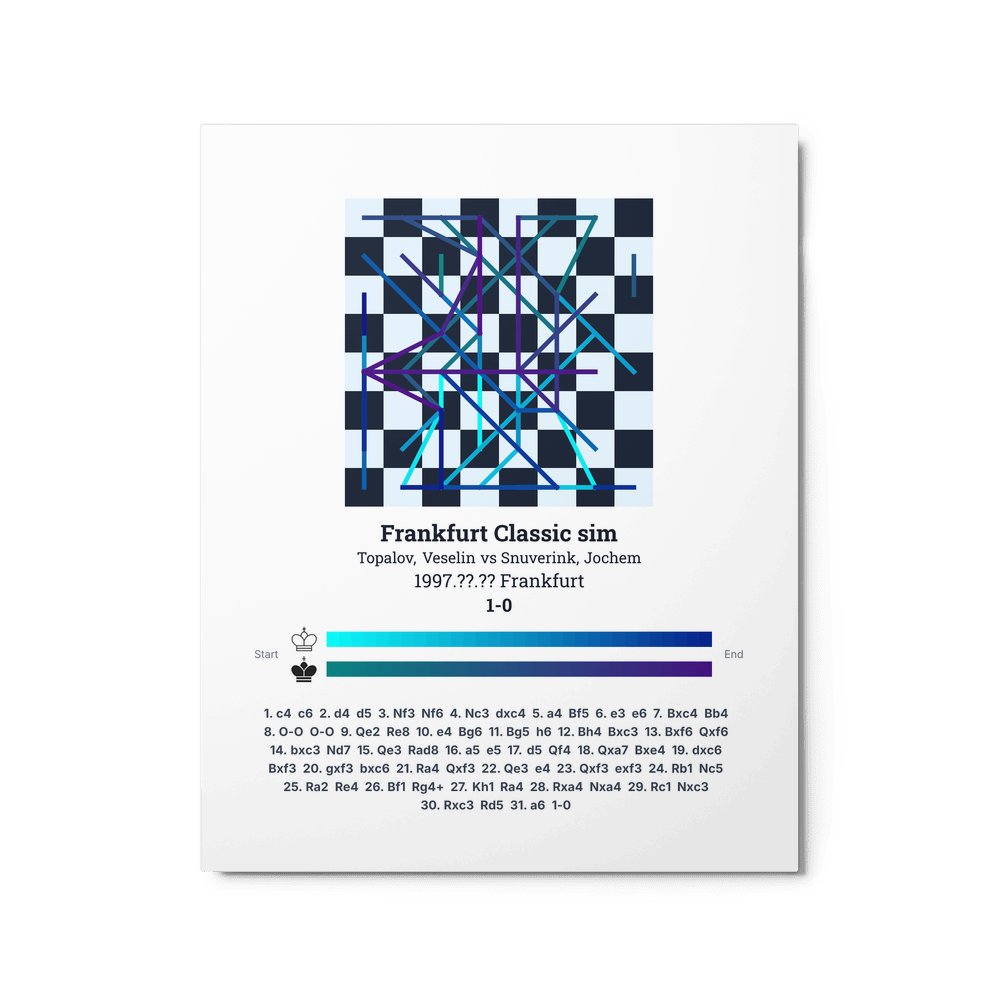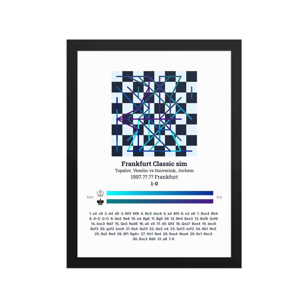 Museum-quality poster on thick, durable matte paper. A sharp, clean look for any chess visualisation.
