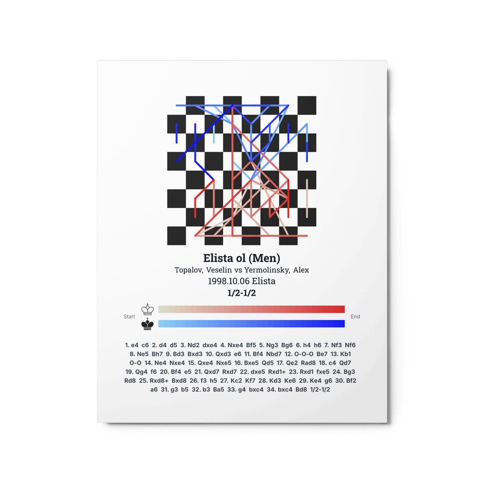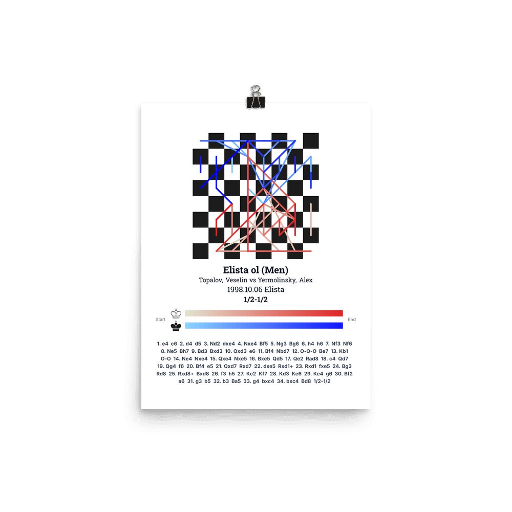 Museum-quality poster on thick, durable matte paper. A sharp, clean look for any chess visualisation.