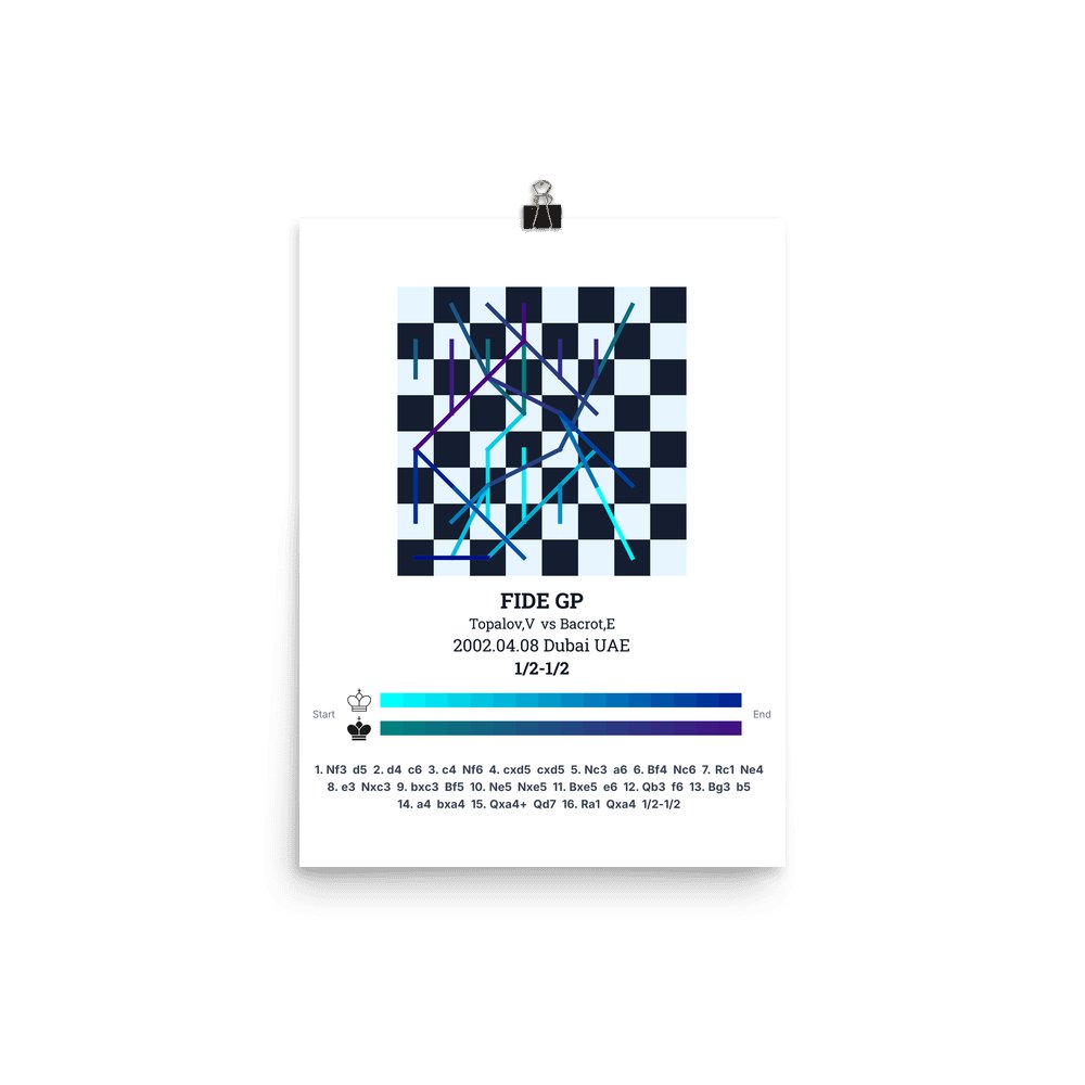 Museum-quality poster on thick, durable matte paper. A sharp, clean look for any chess visualisation.