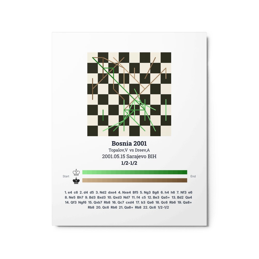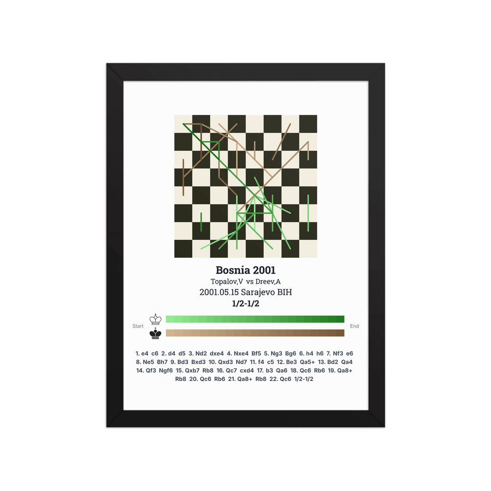 Museum-quality poster on thick, durable matte paper. A sharp, clean look for any chess visualisation.
