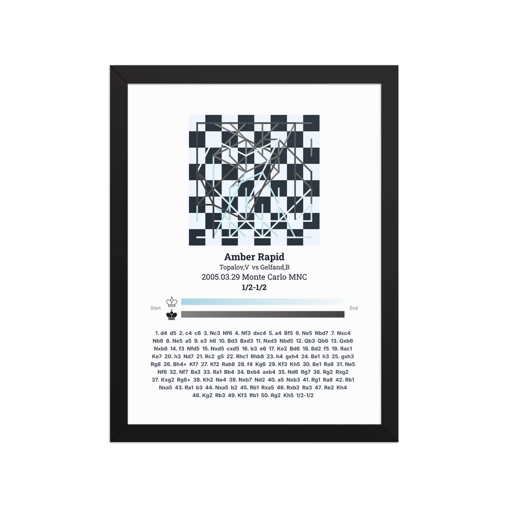 Museum-quality poster on thick, durable matte paper. A sharp, clean look for any chess visualisation.