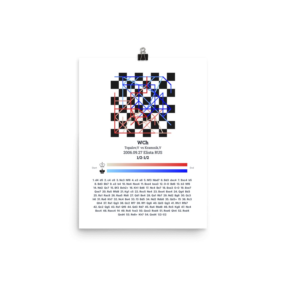 Museum-quality poster on thick, durable matte paper. A sharp, clean look for any chess visualisation.