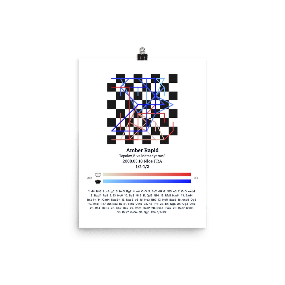 Museum-quality poster on thick, durable matte paper. A sharp, clean look for any chess visualisation.