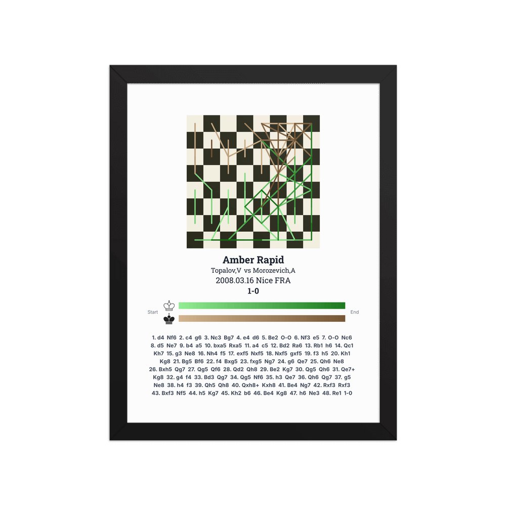 Museum-quality poster on thick, durable matte paper. A sharp, clean look for any chess visualisation.