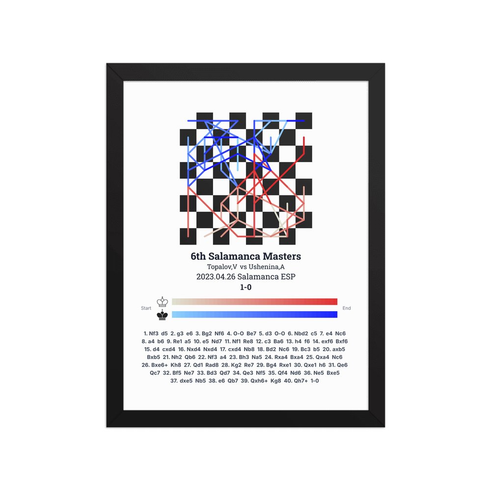 Museum-quality poster on thick, durable matte paper. A sharp, clean look for any chess visualisation.