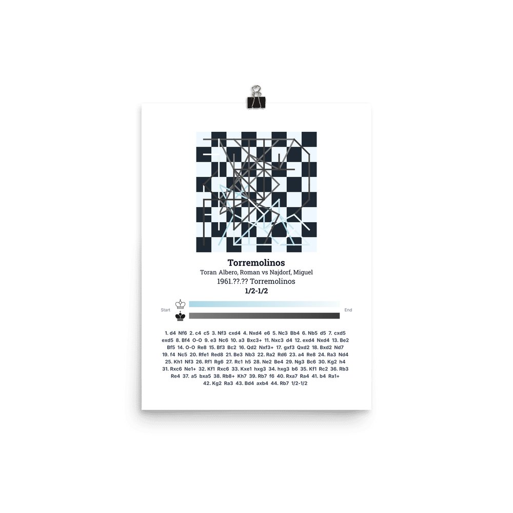 Museum-quality poster on thick, durable matte paper. A sharp, clean look for any chess visualisation.