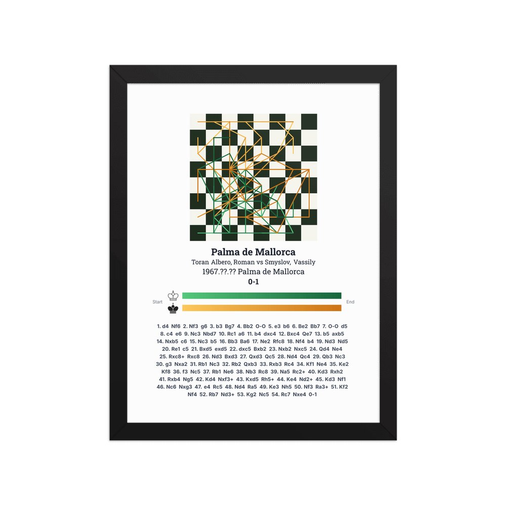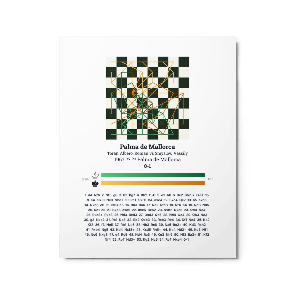 Museum-quality poster on thick, durable matte paper. A sharp, clean look for any chess visualisation.
