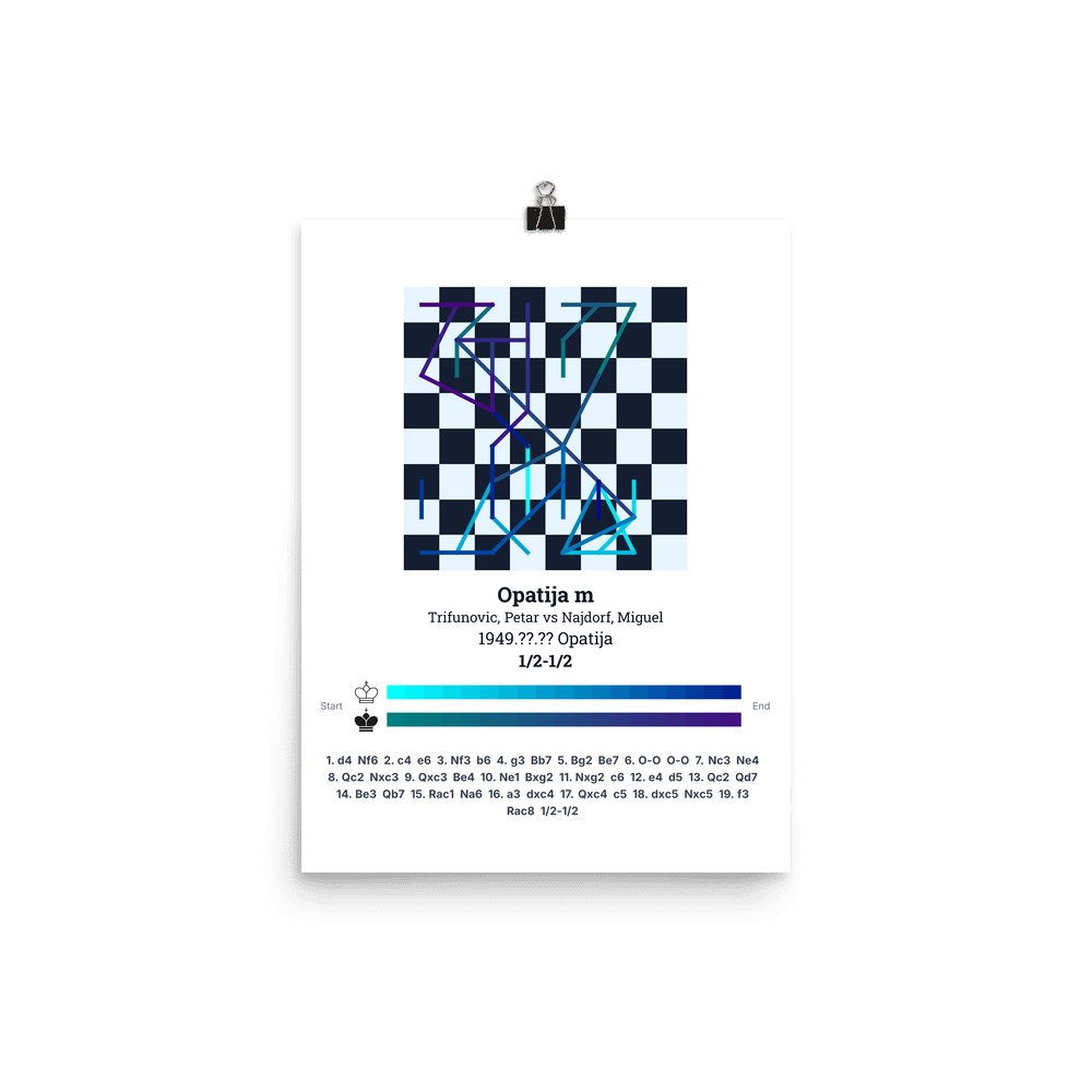 Museum-quality poster on thick, durable matte paper. A sharp, clean look for any chess visualisation.