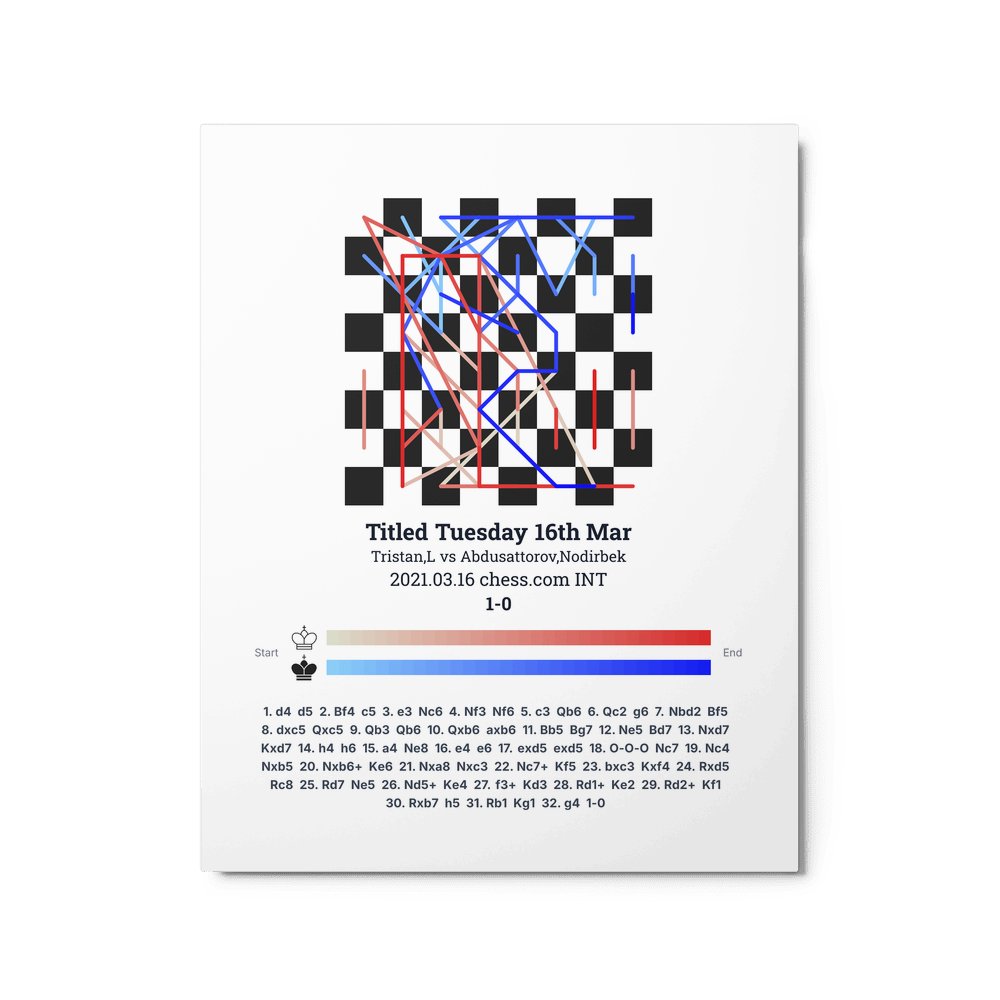 Museum-quality poster on thick, durable matte paper. A sharp, clean look for any chess visualisation.