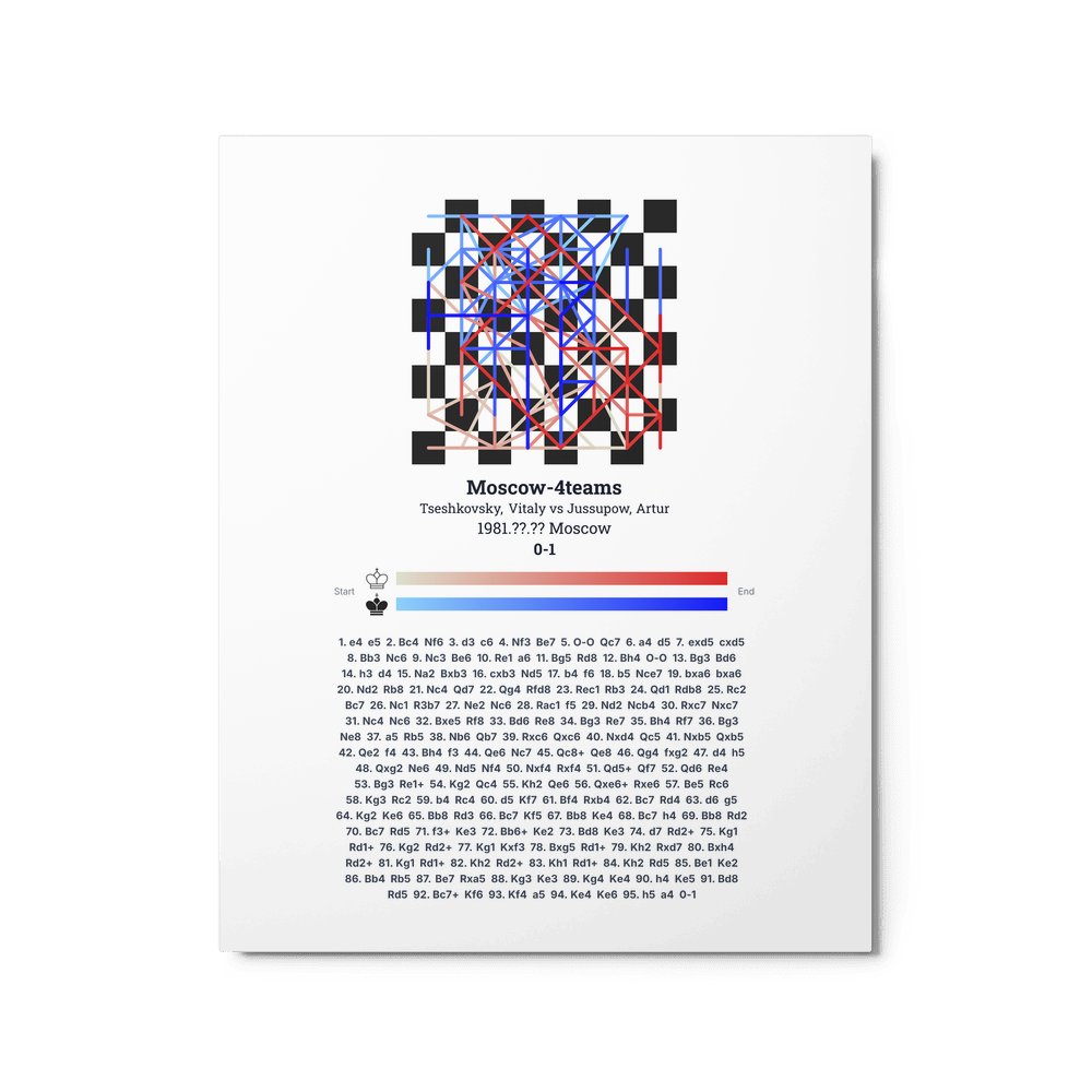 Museum-quality poster on thick, durable matte paper. A sharp, clean look for any chess visualisation.