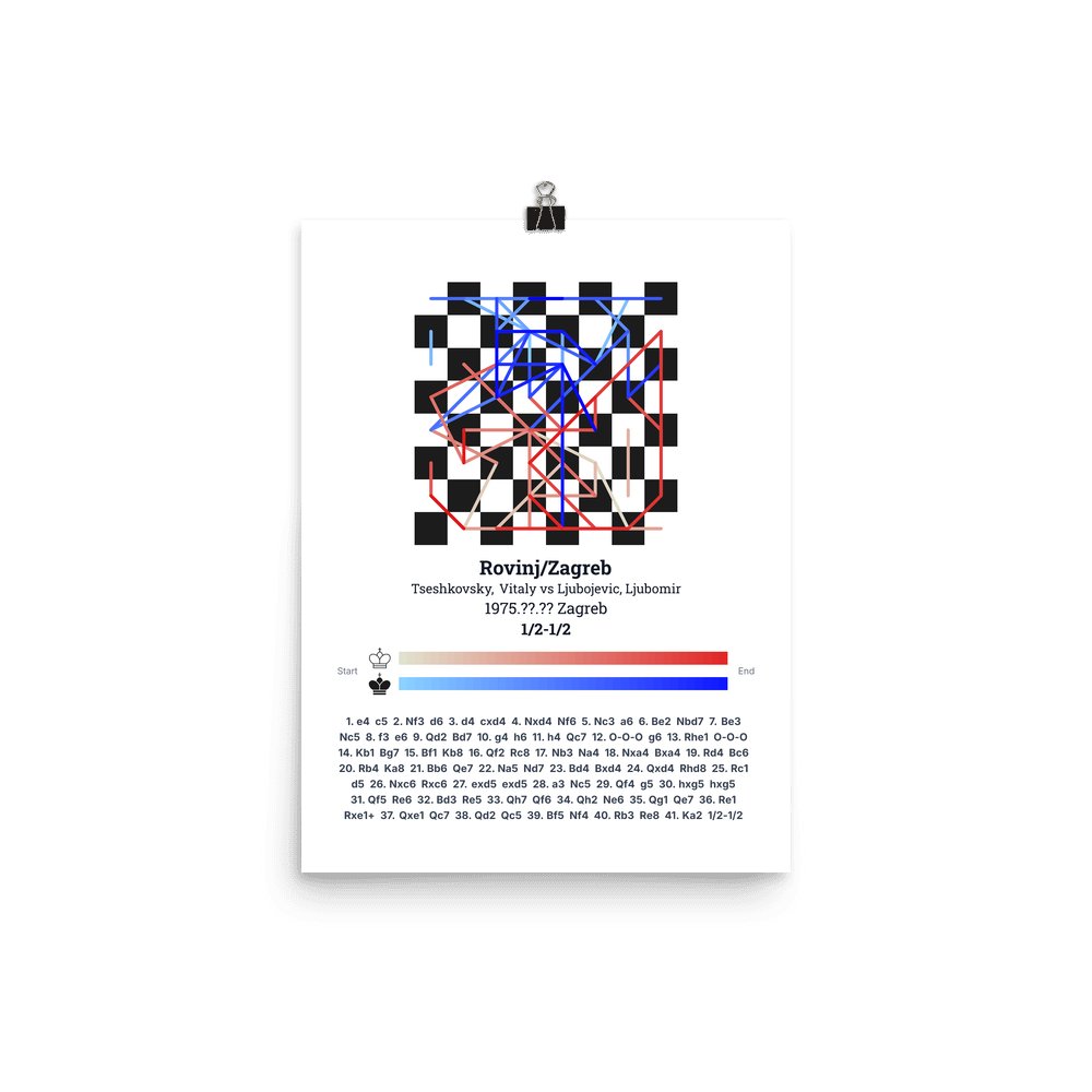 Museum-quality poster on thick, durable matte paper. A sharp, clean look for any chess visualisation.