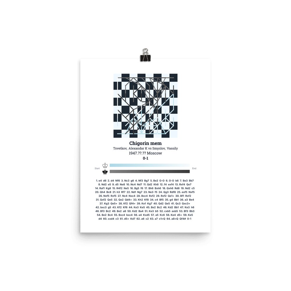 Museum-quality poster on thick, durable matte paper. A sharp, clean look for any chess visualisation.