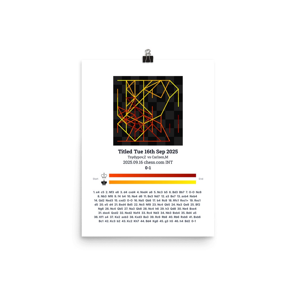 Museum-quality poster on thick, durable matte paper. A sharp, clean look for any chess visualisation.